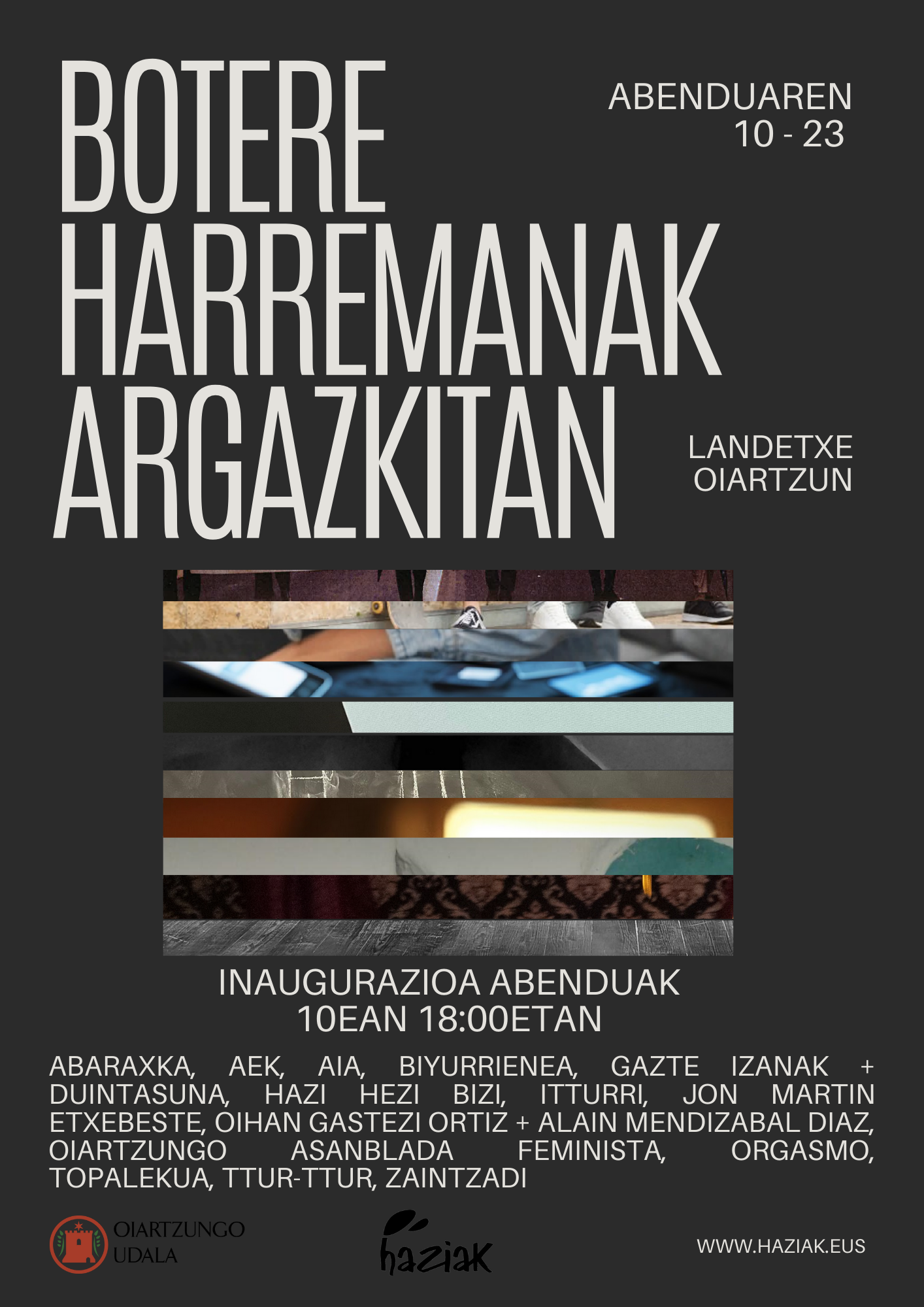 Abenduaren 10ean inauguratuko da “Botere Harremanak Argazkitan” erakusketa Landetxeko lehen solairuko pasabidean (Oiartzun), 18:00etan. Komunitatean egunero bizi ditugun botere harremanak irudien bidez azaleratzeko espazioa izango da: elkarri begiratzeko, geure burua besteengan islatuta ikusteko edo, baliteke, interpelatuak sentitzeko ere.